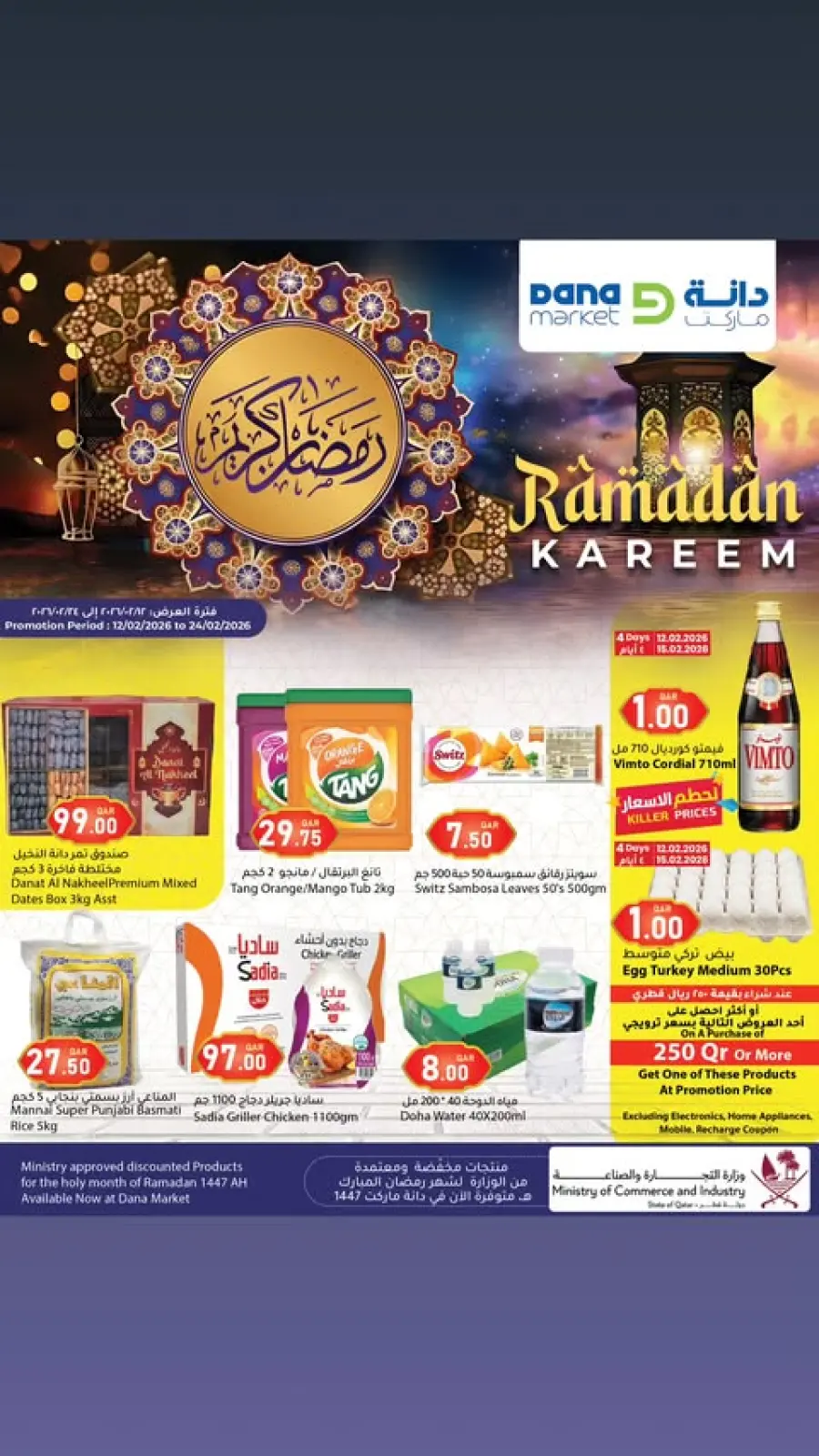 اكتشف أحدث عروض دانة هايبر ماركت في قطر اليوم وتصفح كاتالوج عروض رمضان كريم واستفد من أفضل الأسعار حتى 24 فبراير 2026.