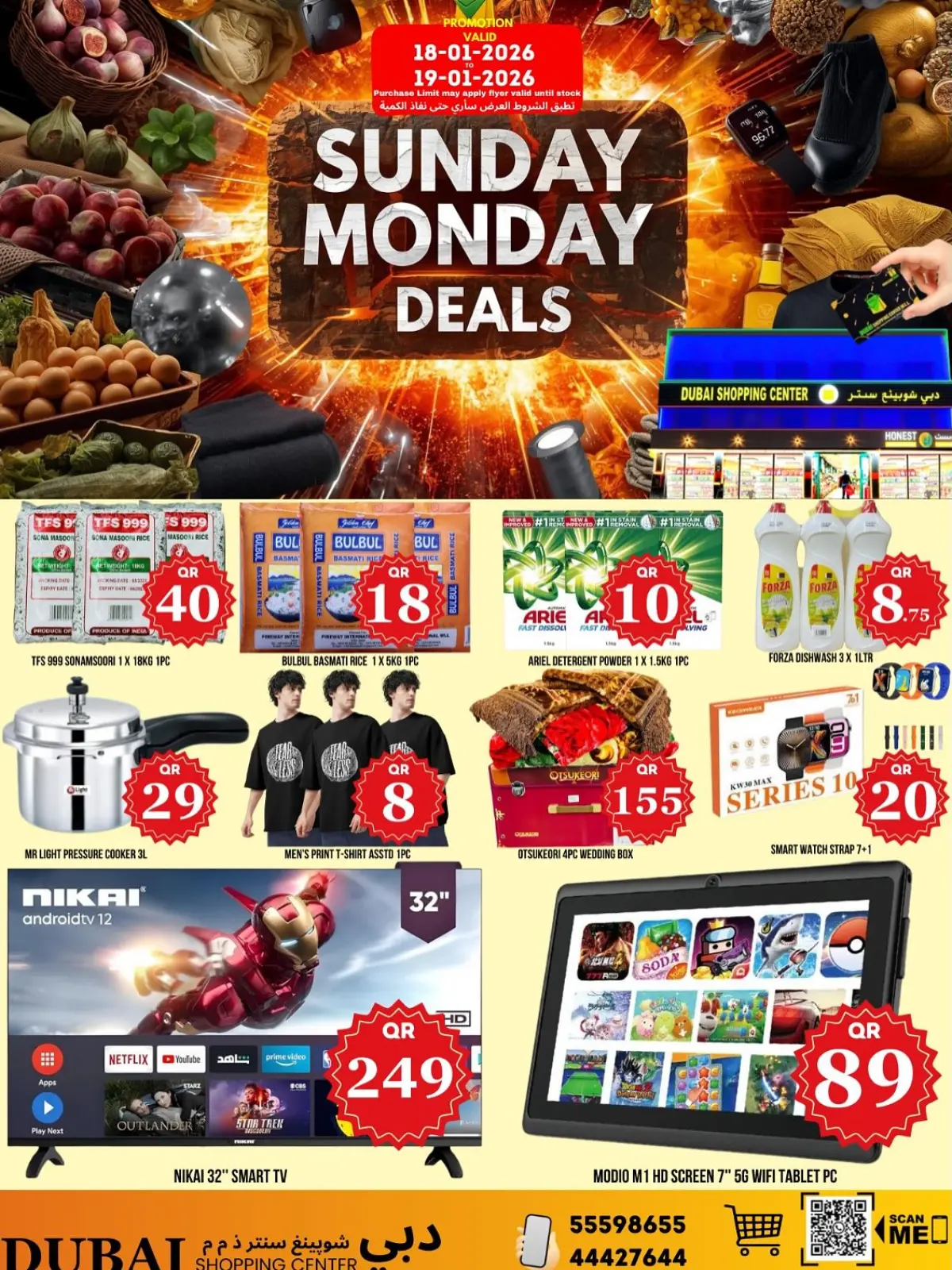 اكتشف أحدث عروض دبي شوبينغ سنتر في قطر اليوم وتصفح كاتالوج عروض الأحد والأثنين واستفد من أفضل الأسعار حتى 19 يناير 2026.