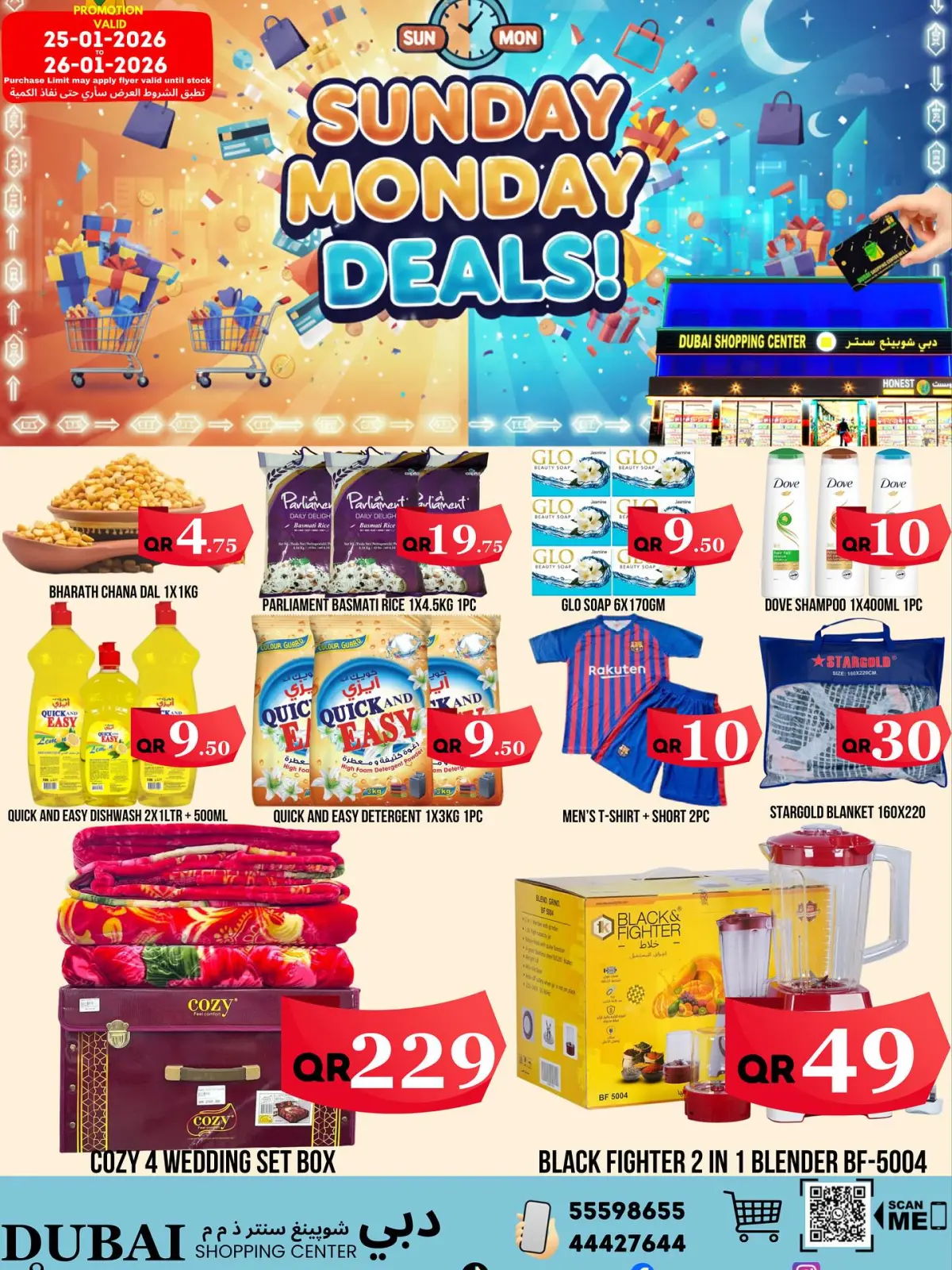 تنويه: صور وأسعار عروض الأحد والأثنين في دبي شوبينغ سنتر قطر المعروضة في هذا الكاتالوج لأغراض توضيحية فقط، وتخضع للتوفر في الفروع خلال فترة العرض.