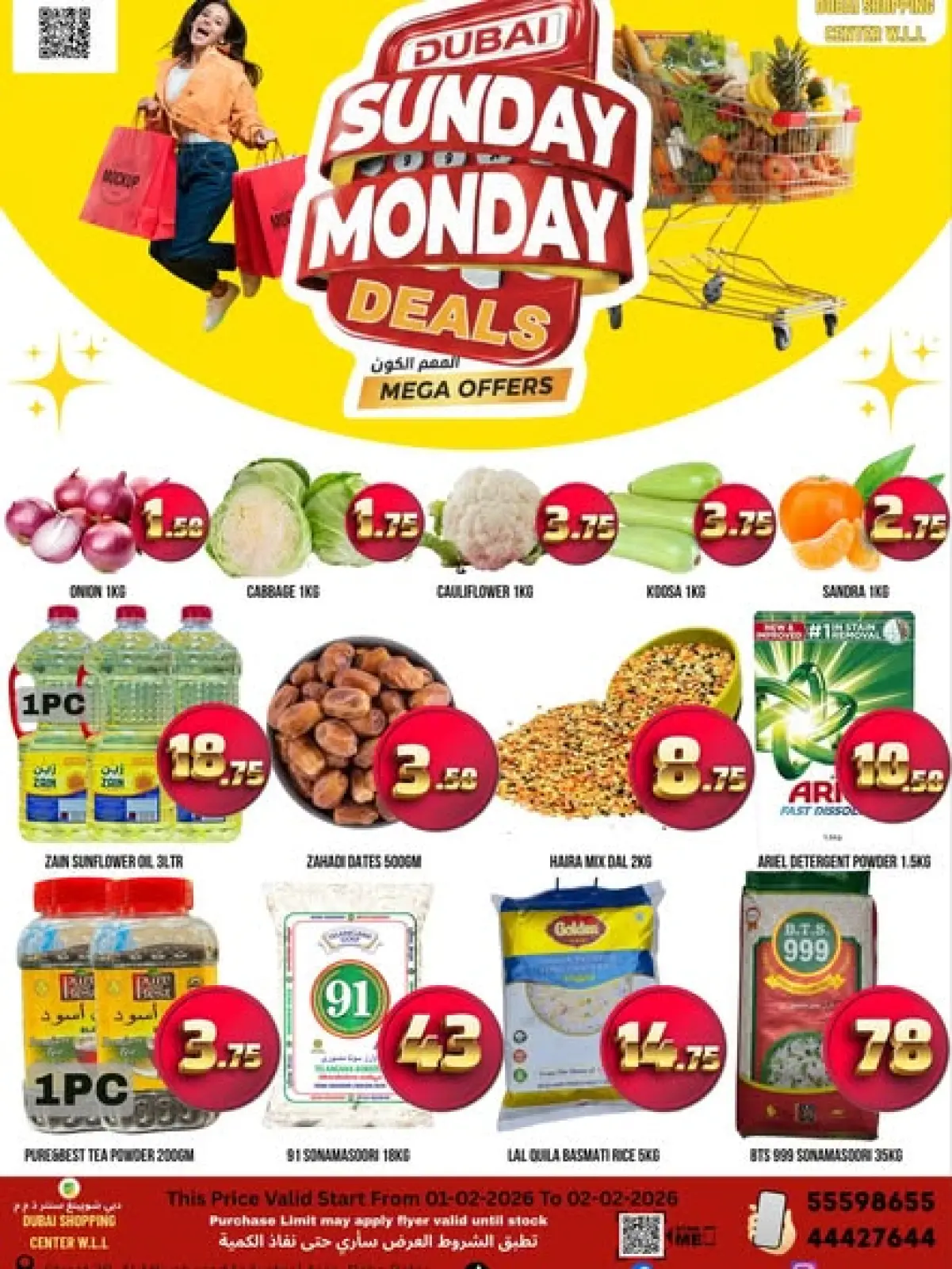 اكتشف أحدث عروض دبي شوبينغ سنتر في قطر اليوم وتصفح كاتالوج عروض الأحد والأثنين واستفد من أفضل الأسعار حتى 2 فبراير 2026.