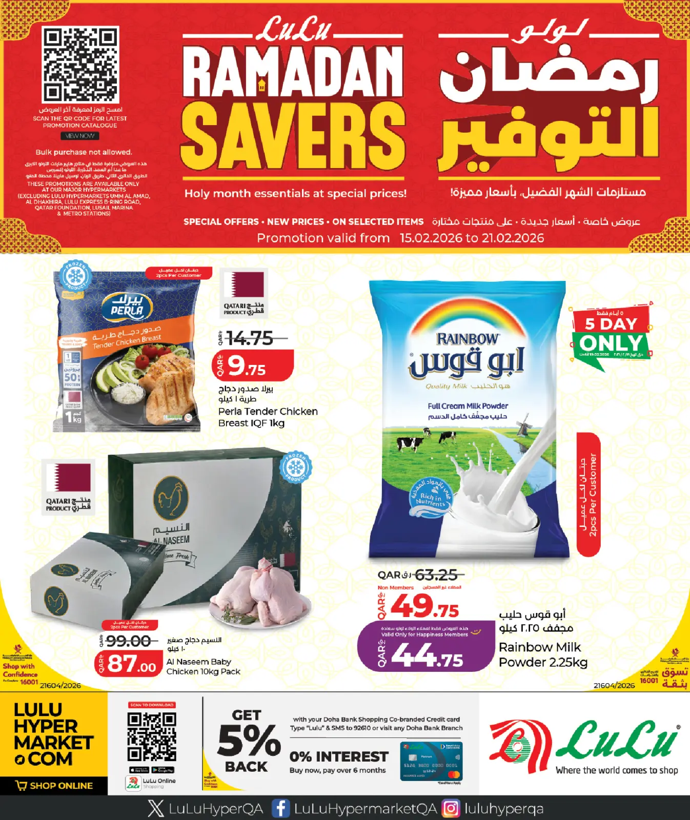 تنويه: صور وأسعار رمضان التوفير في لولو قطر المعروضة في هذا الكاتالوج لأغراض توضيحية فقط، وتخضع للتوفر في الفروع خلال فترة العرض.