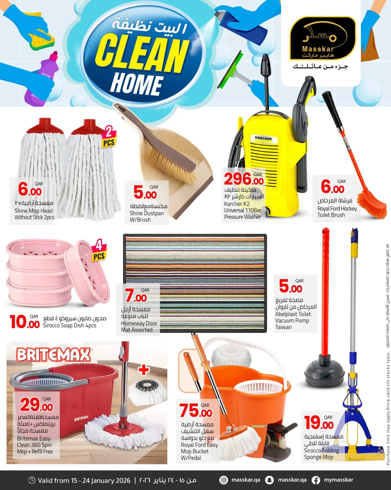 تنويه: صور وأسعار عروض البيت النظيف في مسكر هايبر ماركت قطر المعروضة في هذا الكاتالوج لأغراض توضيحية فقط، وتخضع للتوفر في الفروع خلال فترة العرض.
