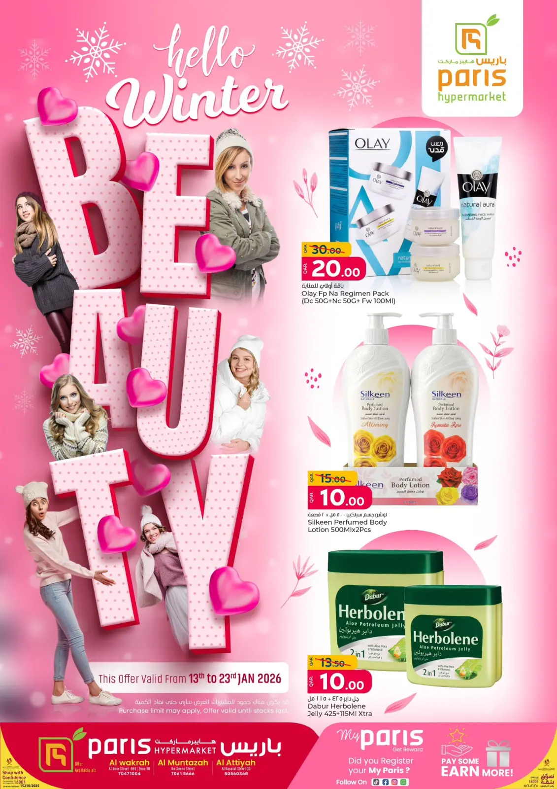 اكتشف أحدث عروض باريس هايبر ماركت في قطر اليوم وتصفح كاتالوج عروض جمال الشتاء واستفد من أفضل الأسعار حتى 23 يناير 2026.