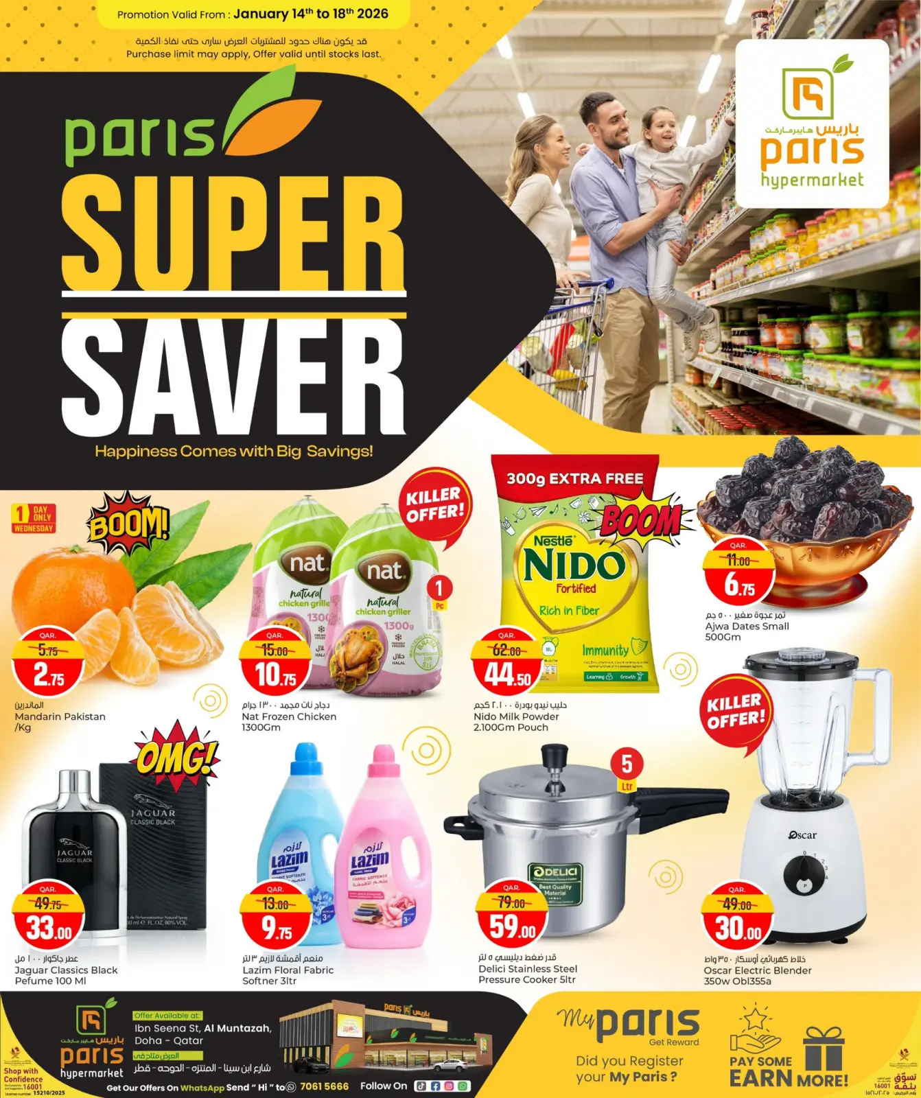 - عروض باريس هايبر ماركت العطية من 14 حتى 18 يناير 2026 التوفير المذهل