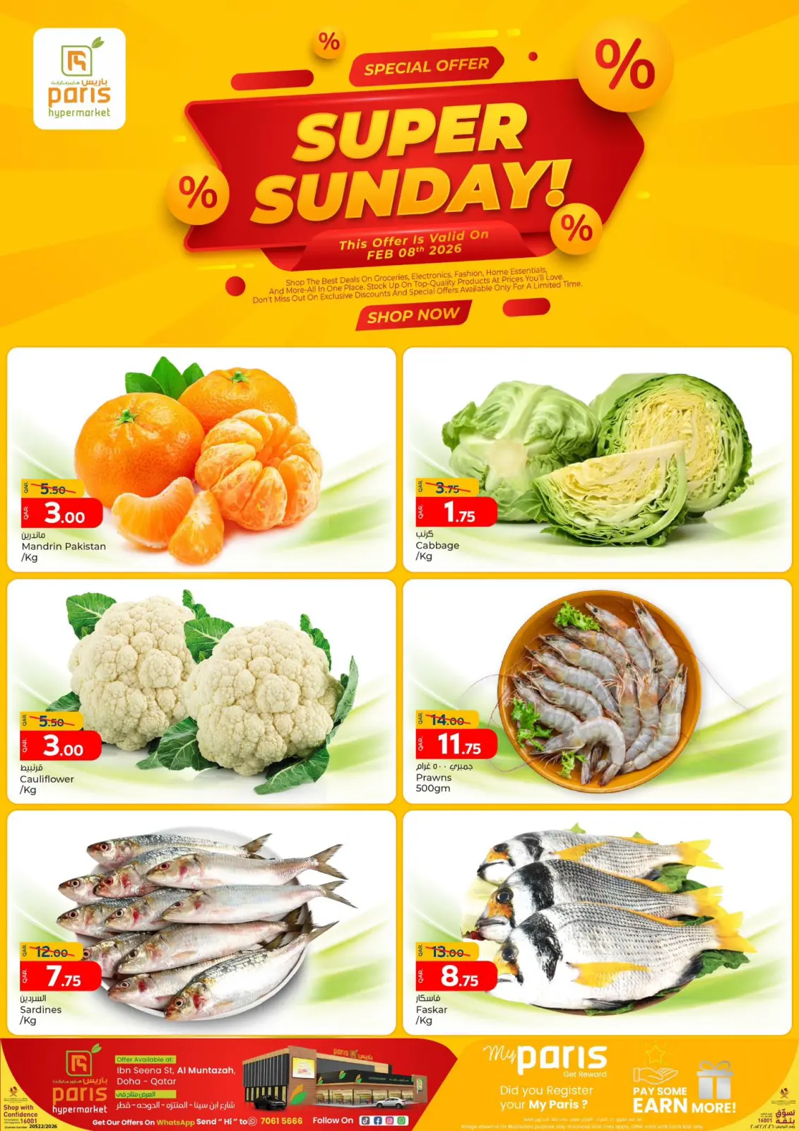 اكتشف أحدث عروض باريس هايبر ماركت في قطر اليوم بفروع المنتزة وتصفح كاتالوج عروض الأحد المذهل واستفد من أفضل الأسعار حتى 8 فبراير 2026.