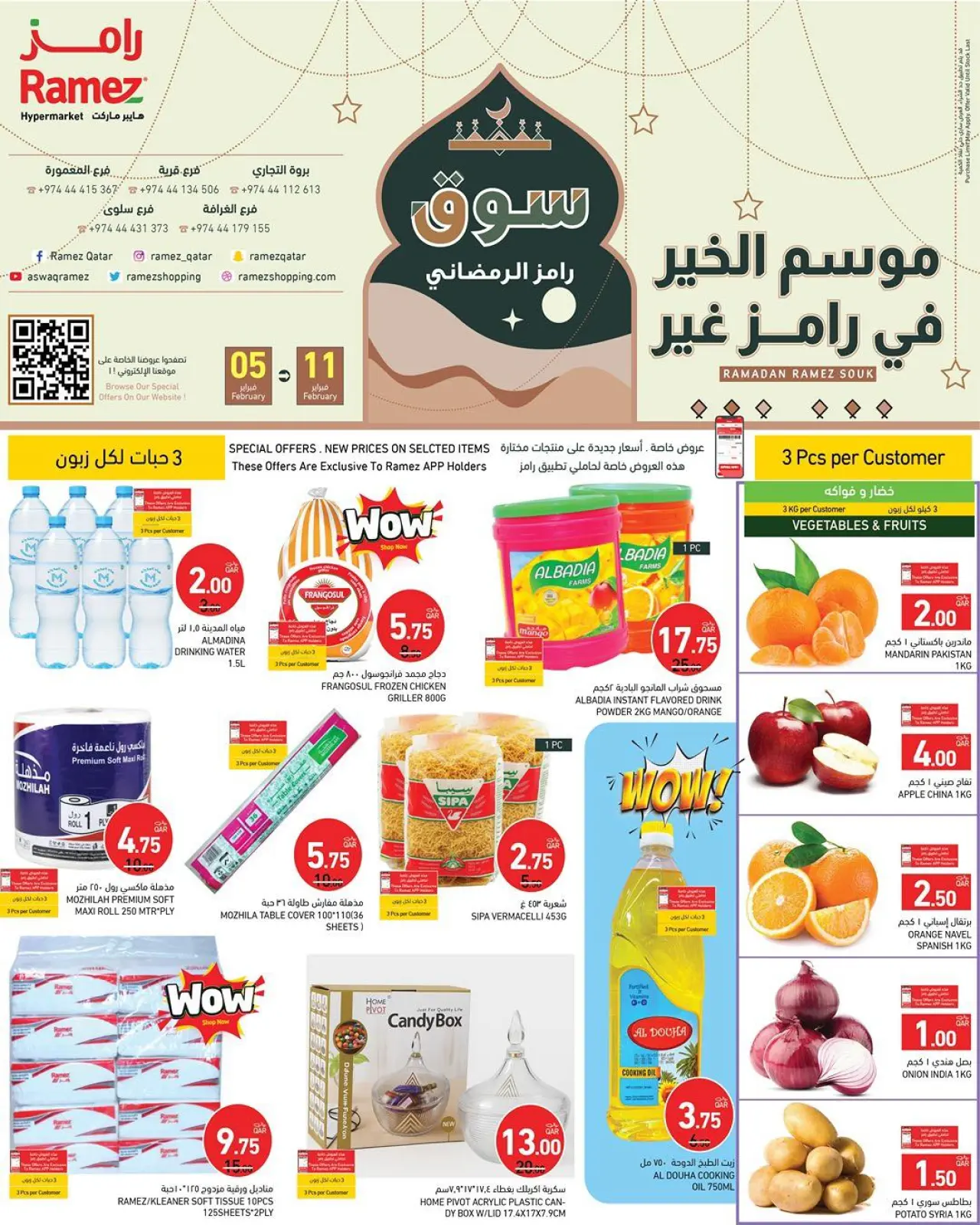 تنويه: صور وأسعار عروض سوق رمضان في أسواق رامز قطر المعروضة في هذا الكاتالوج لأغراض توضيحية فقط، وتخضع للتوفر في الفروع خلال فترة العرض.