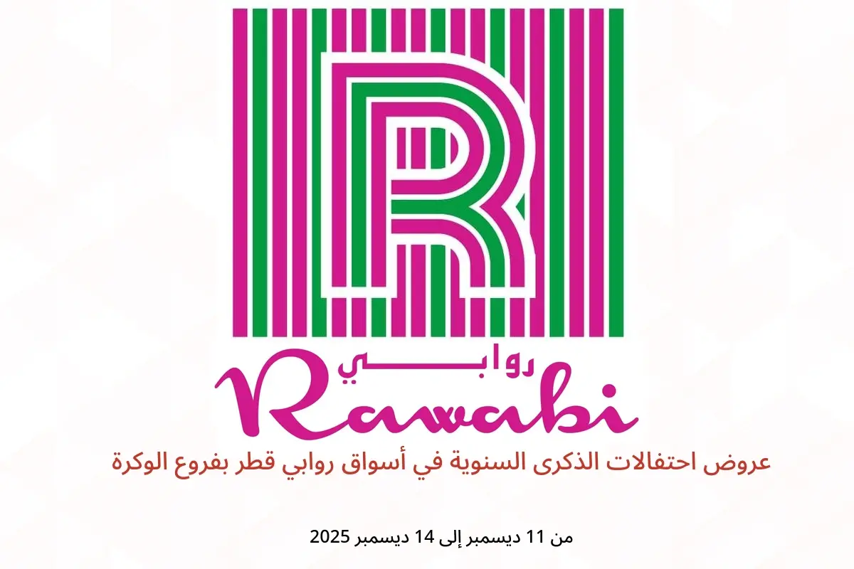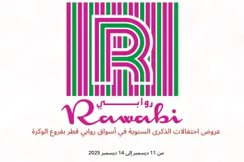 أسواق روابي قطر بفروع الوكرة تعلن عن تخفيضات جديدة بعنوان « عروض احتفالات الذكرى السنوية » المتوفرة حتي يوم 14 ديسمبر 2025, عروض جديدة وأسعار فقط في قطر.
