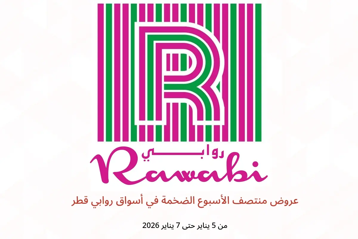 اكتشف أحدث عروض أسواق روابي في قطر اليوم وتصفح كاتالوج عروض منتصف الأسبوع الضخمة واستفد من أفضل الأسعار حتى 7 يناير 2026.