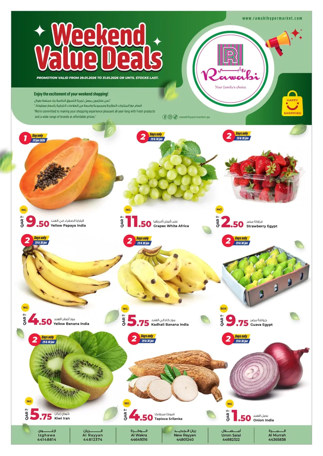 تنويه: صور وأسعار عروض نهاية الأسبوع القيمة في أسواق روابي قطر المعروضة في هذا الكاتالوج لأغراض توضيحية فقط، وتخضع للتوفر في الفروع خلال فترة العرض.