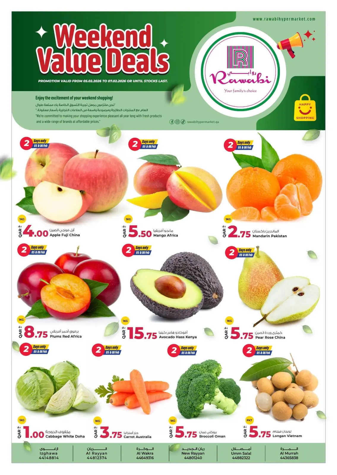 تنويه: صور وأسعار عروض نهاية الأسبوع القيمة في أسواق روابي قطر المعروضة في هذا الكاتالوج لأغراض توضيحية فقط، وتخضع للتوفر في الفروع خلال فترة العرض.