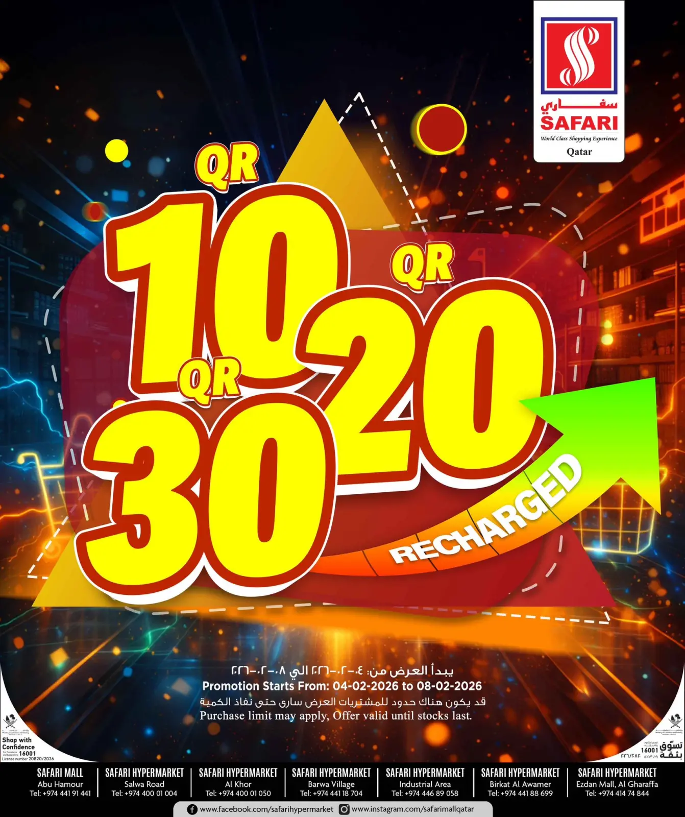 اكتشف أحدث عروض سفارى هايبر ماركت في قطر اليوم وتصفح كاتالوج أرقام مثيرة 10،20،30 واستفد من أفضل الأسعار حتى 8 فبراير 2026.