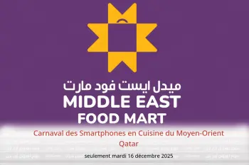 Cuisine du Moyen-Orient Qatar annonce de nouvelles réductions intitulées « Carnaval des Smartphones » disponibles jusqu'au 16 décembre 2025, de nouvelles offres et prix uniquement en Qatar.