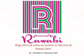 Marchés de Rawabi Qatar annonce de nouvelles réductions intitulées « Méga offres de milieu de semaine » disponibles jusqu'au 3 décembre 2025, de nouvelles offres et prix uniquement en Qatar.