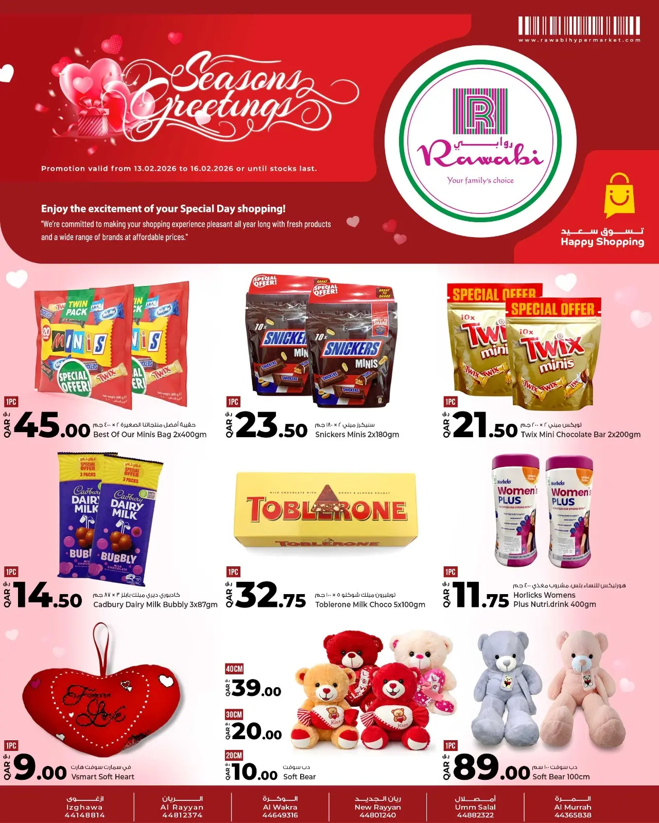 تنويه: صور وأسعار عروض عيد الحب في أسواق روابي قطر المعروضة في هذا الكاتالوج لأغراض توضيحية فقط، وتخضع للتوفر في الفروع خلال فترة العرض.